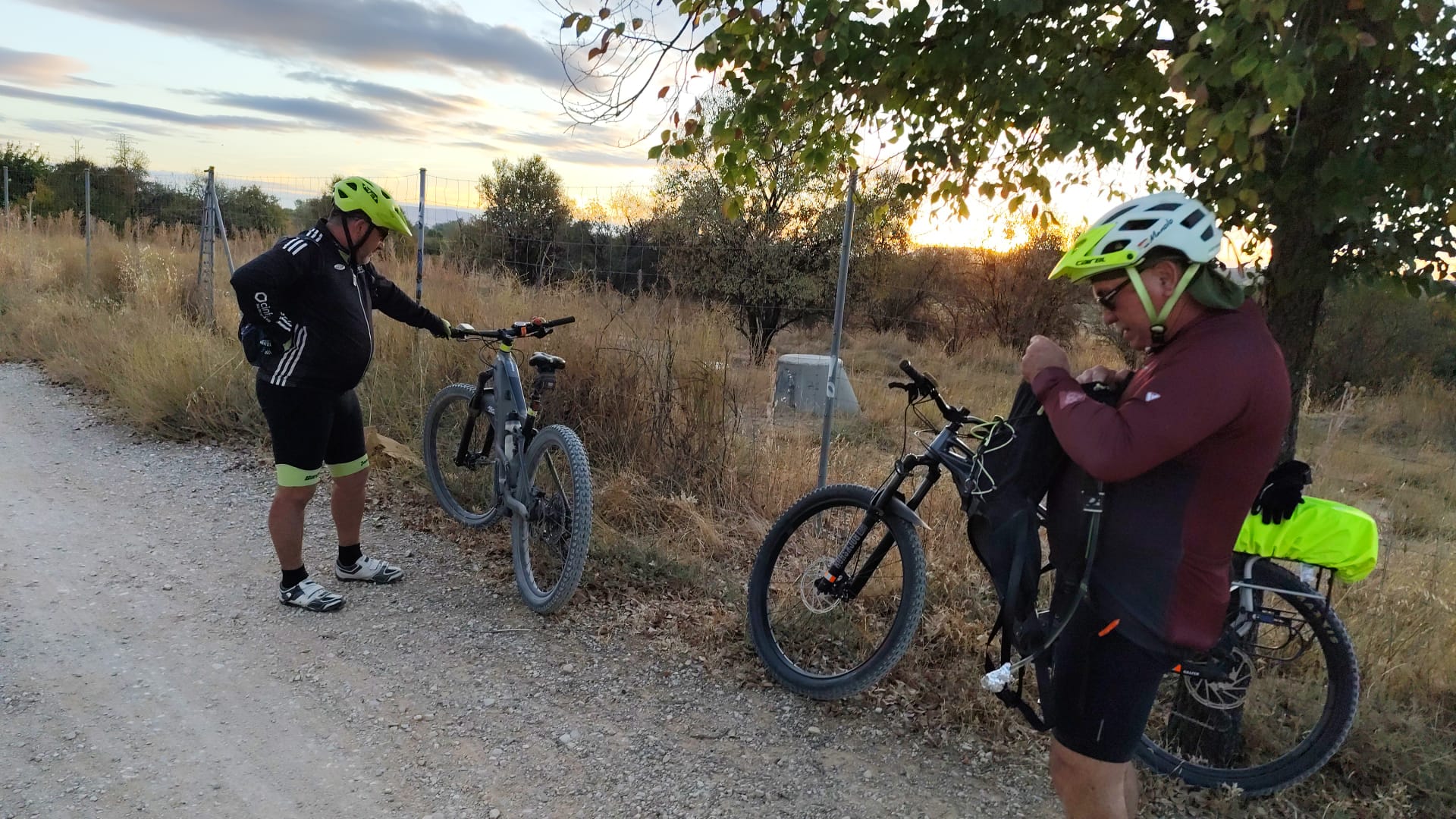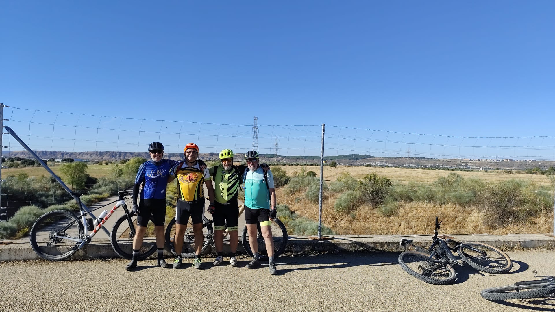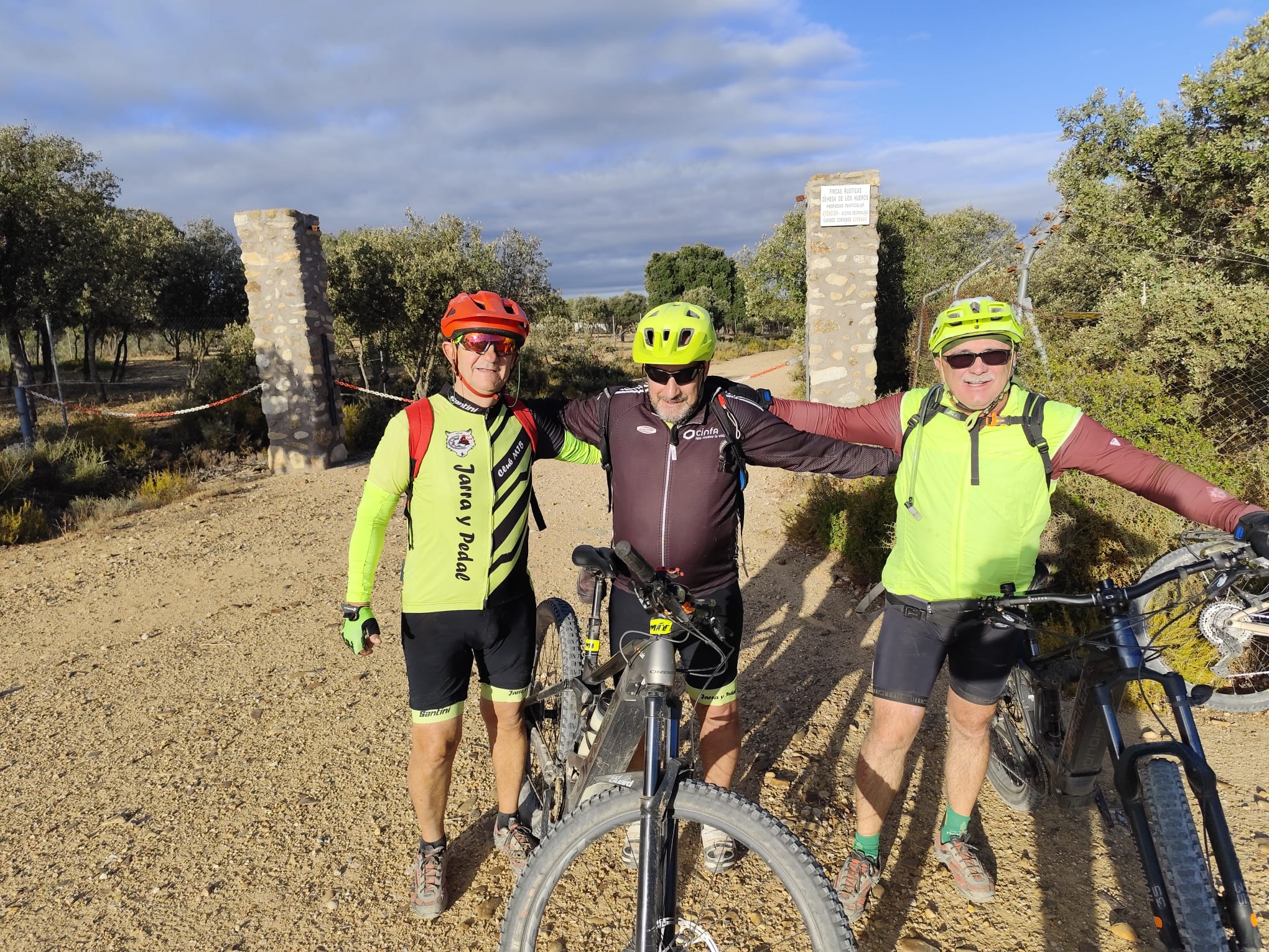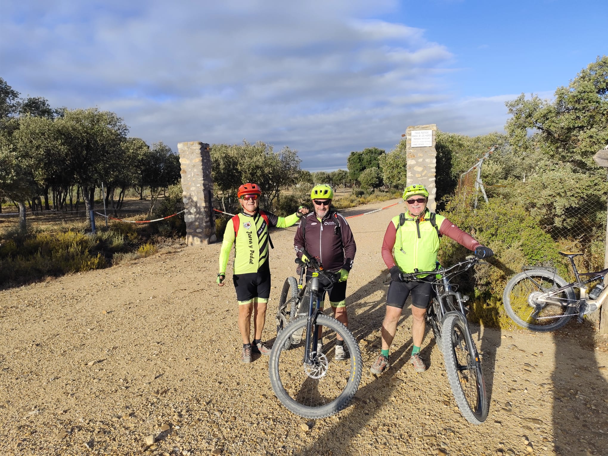 El plan era claro: rumbo a Torres de la Alameda, por esos caminos que ya conocemos bien, pero que siempre nos regalan algo nuevo —un paisaje distinto, una charla divertida o una anécdota para recordar. La ruta, eso sí, venía con su toque de aventura: el polvo se levantaba con cada pedalada, cubriéndonos de ese tono marrón que solo los verdaderos bikers entienden como una medalla de honor.
