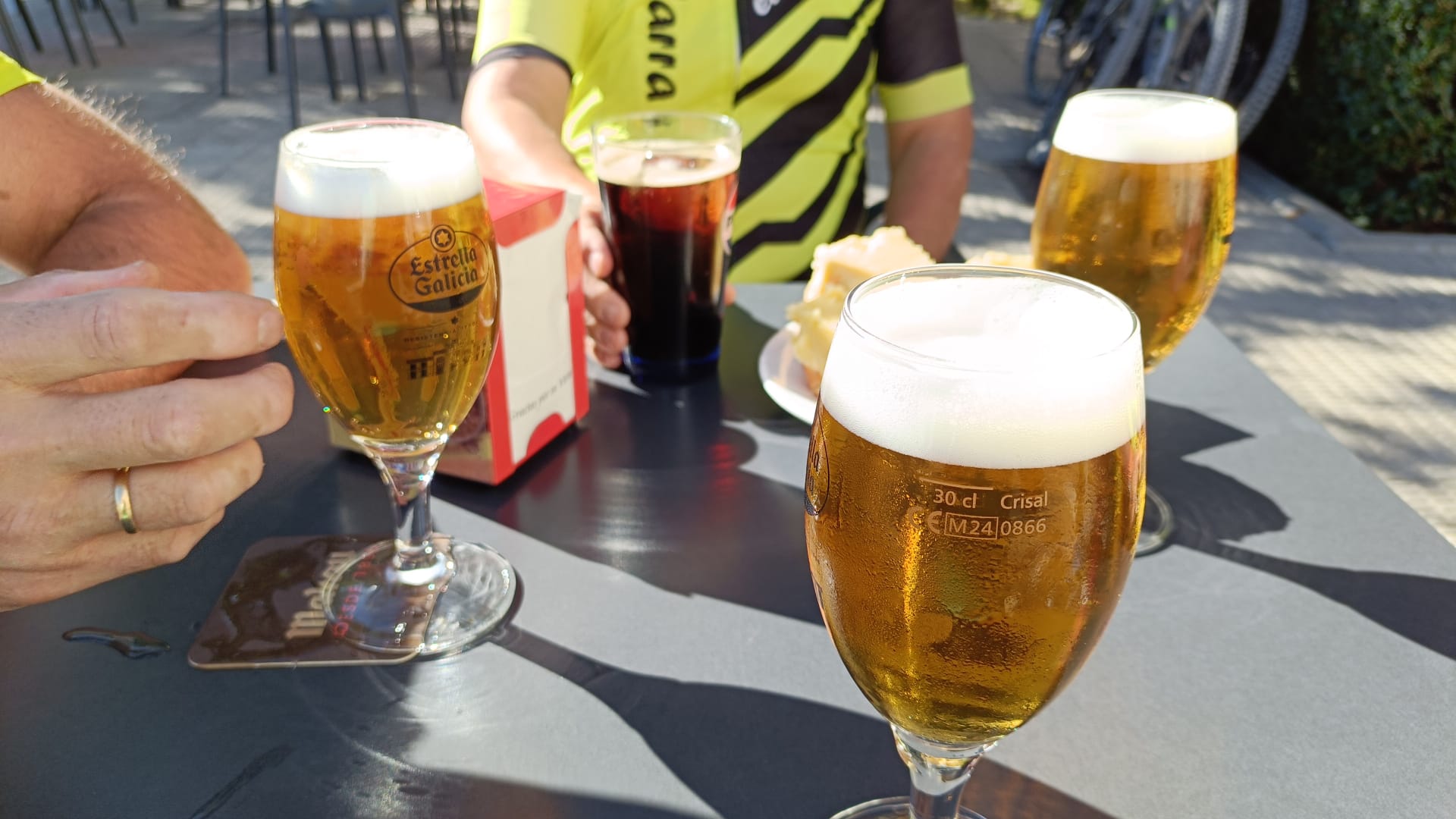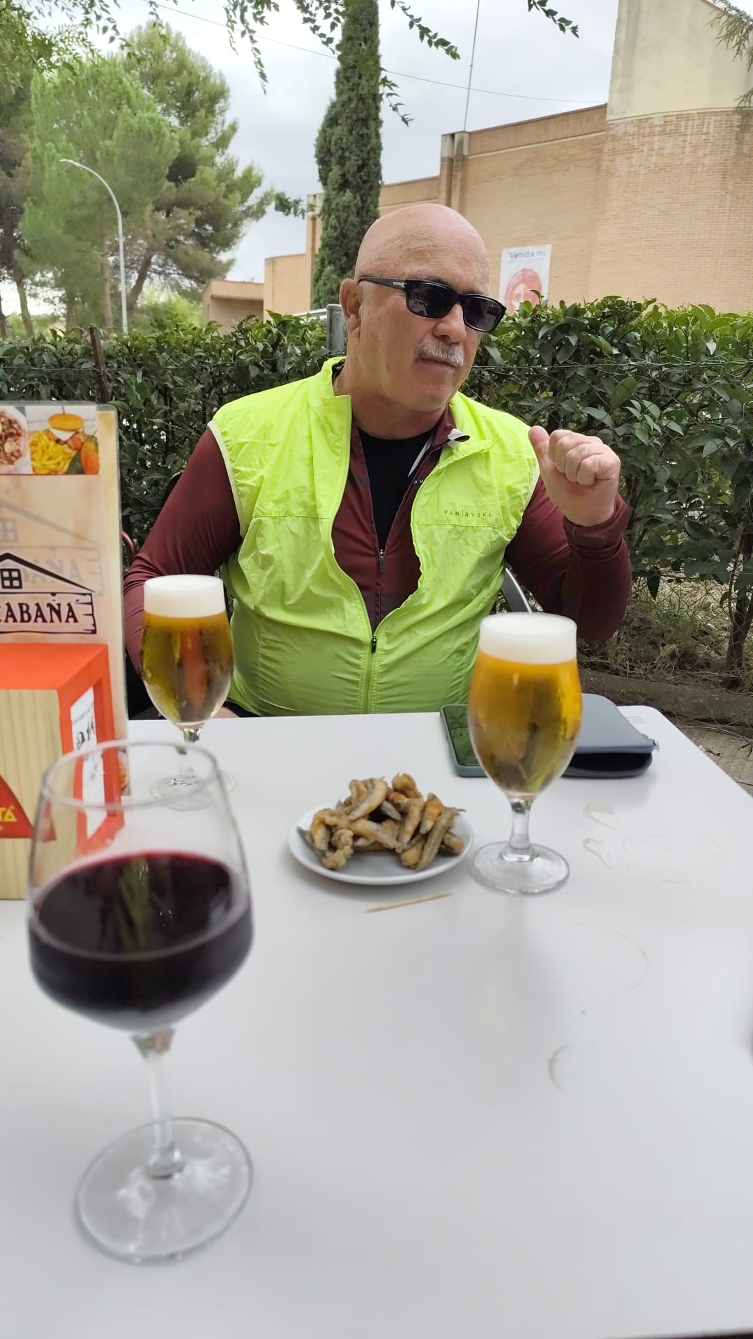 Ya de regreso, con las piernas cargadas y el alma contenta, hicimos la parada obligatoria en Coslada, esta vez en el bar de Juani, nuestro refugio de siempre. Allí cayeron las cervezas frías y unos vinos que supieron a gloria. La charla se alargó entre risas, anécdotas del camino y planes para la próxima salida.