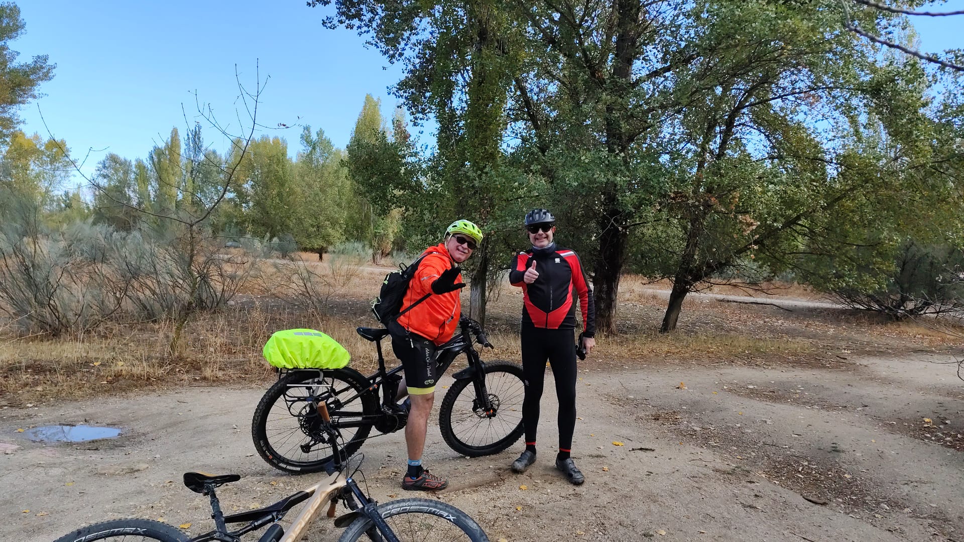 El plan era claro: rumbo a Torres de la Alameda, por esos caminos que ya conocemos bien, pero que siempre nos regalan algo nuevo —un paisaje distinto, una charla divertida o una anécdota para recordar. La ruta, eso sí, venía con su toque de aventura: el polvo se levantaba con cada pedalada, cubriéndonos de ese tono marrón que solo los verdaderos bikers entienden como una medalla de honor.