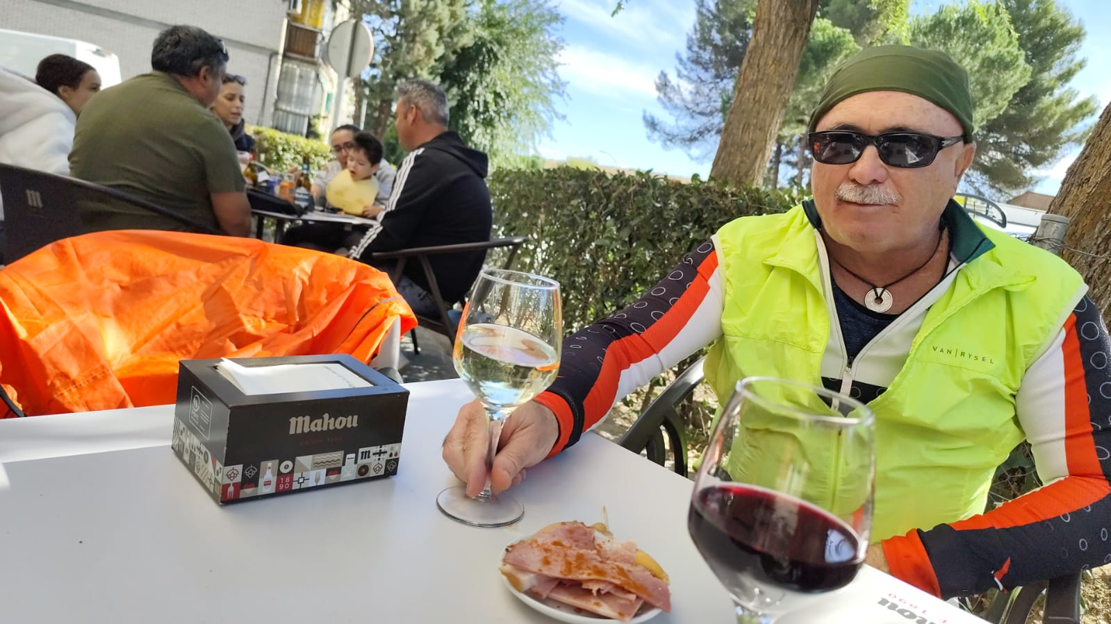 Ya de regreso, con las piernas cargadas y el alma contenta, hicimos la parada obligatoria en Coslada, esta vez en el bar de Juani, nuestro refugio de siempre. Allí cayeron las cervezas frías y unos vinos que supieron a gloria. La charla se alargó entre risas, anécdotas del camino y planes para la próxima salida.