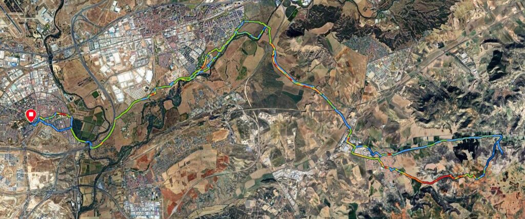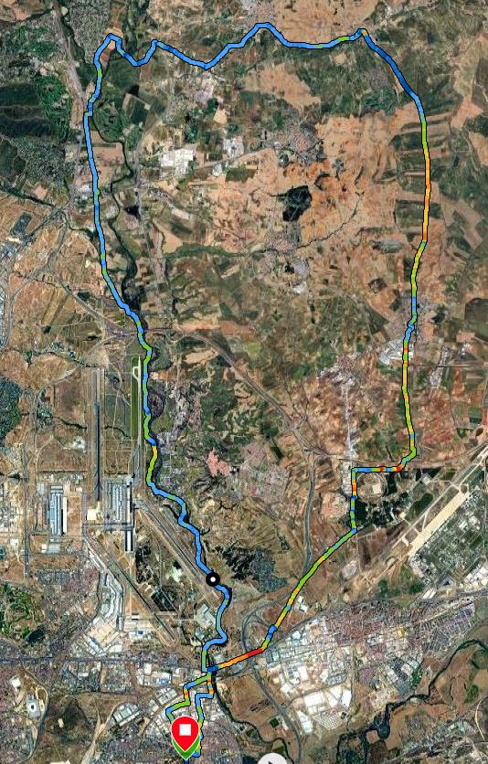 Arrancamos destino a la Muñoza hasta la Heineken o cruce de Algete cruzamos el Jarama y Entramos en Fuente el Saz y por grandes pistas arregladas llegamos Alalpardo encontramos granjas con vacas enormes y rebaños de ovejas que nos abren el camino dejando sus huellas en forma de bolitas , más pistas que nos llevan a Daganzo al atravesar el pueblo pasamos por la casa del tío de Rubén 😜. Seguimos dándolo todo hasta Ajalvir pasando por la puerta de los paracas saludamos a los dos pistolos que hacen guardia continuamos por el camino paralelo a la carretera del INTA hasta la N-II San Fernando puente y al polígono para atravesarlo llegando a nuestra zona de confort ( el bar de la cabaña) donde brindamos por una salida más 😜 buen día y mejor compañía.