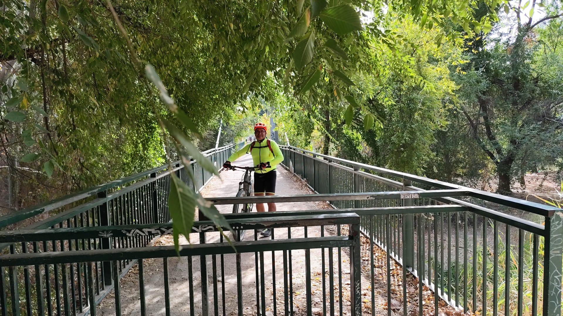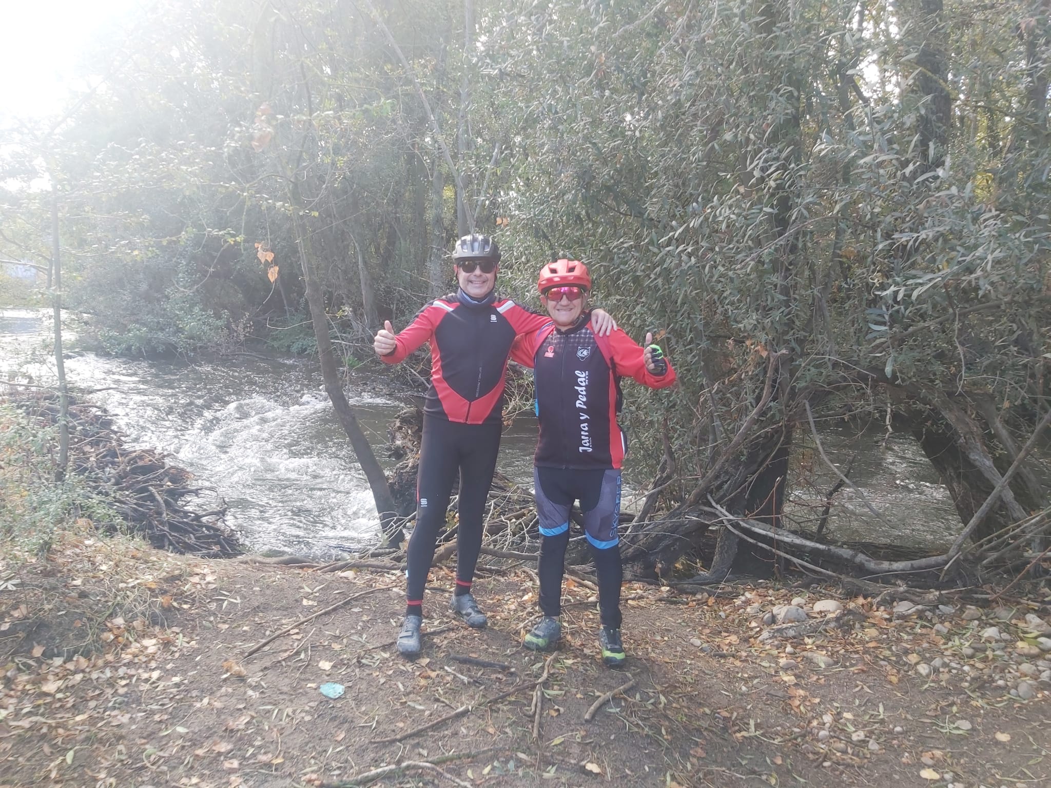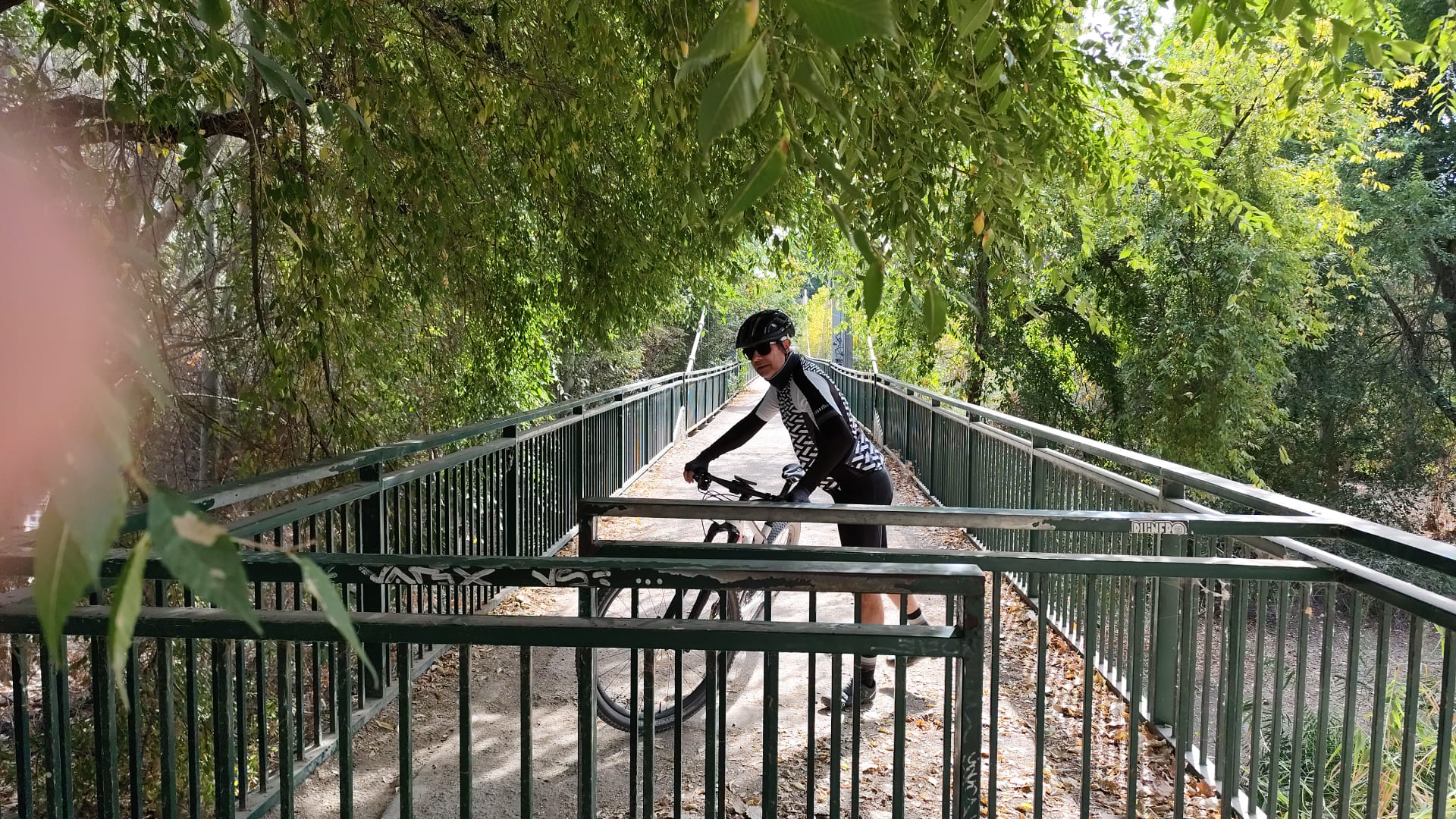 Luis, Clemente y Manolo, parece que no se anima nadie más y sale la propuesta para la ruta de hoy. Los Hueros por el camino de tierra, iniciamos la marcha por la vía de escape para salir del pueblo o sea los chopos cruzamos el puente del moco debajo de la M-50 vemos un A3 clavado en las arenas movedizas del río 🤣 continuamos buscando hueco entre la perrera y el castillo de Aldovea esperemos que después de las obras nos dejen un paso como Dios manda , pasamos el cementerio de Torrejon siguiendo el curso del río hasta cruzarlo por el puente de los faisanes seguimos dejando el Viso a nuestra izquierda camino pedregoso hasta llegar a las nuevas urbanizaciones de los Hueros cruzando e pueblo para ir ascendiendo a las antenas y para hacerlo más interesante subimos por el camino de tierra que está tan seco y con piedras sueltas que derrapan las ruedas pero subimos como unos jabatos , continuamos hasta la pista de aeromodelismo y bajamos a Valverde de Alcalá buscando el camino de regreso, hoy había motos saltando y despacio volvemos para tomar unas cervezas, vino, Coca-Cola 🐞