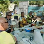 Me ayudáis a levantar y continuamos despacito hasta los huertos de los chopos donde el otro amigo Juan nos prepara unas ensaladas y unos pimientos con huevos y patatas, todos los productos del huerto con unas cervezas 🍺 🍺🍺 los más sibaritas 🍷🍷🍷y algún 🐞🧋Coca Cola «00»charla animada y promesas de hacer unos súper garbanzos con callos