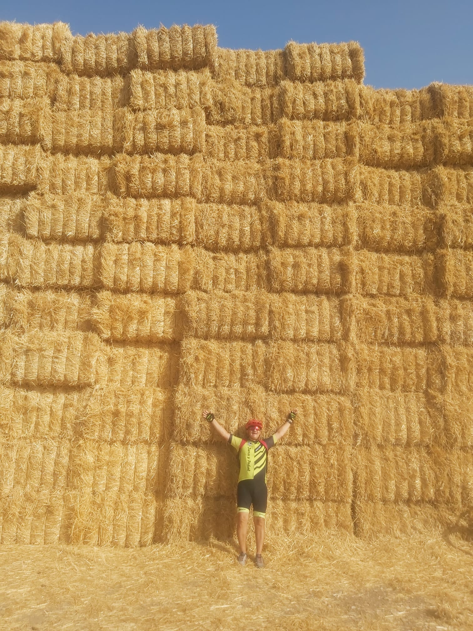 Una vez todos reunidos elegimos ruta, a Campo Real por el camino de los toros, bajamos a los chopos, campo de golf, el rancho, la R3, Velilla que están montando la plaza de toros, seguimos hacia las viñas de Arganda hasta la finca de los toros que hoy no había ninguno, pasó tranquilo hasta el pedregal de la subida ascendiendo al tran,tran llegamos a Campo Real, unas fotos y al pilón regresando por la clásica por la subida del pinar y en la bajada resbalón de la rueda delantera y al suelo » hostia»
